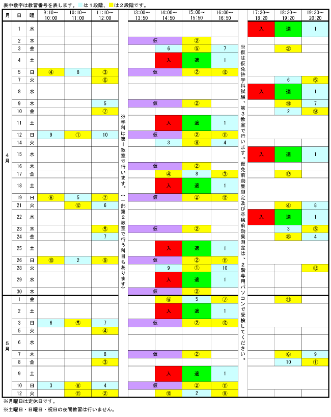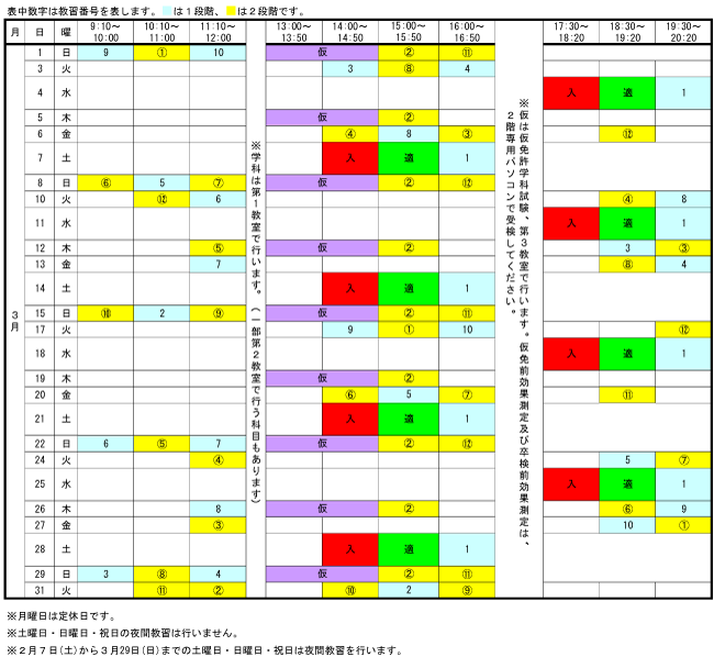 教習時間割