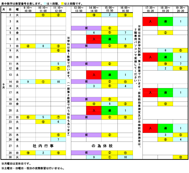 2025年9月 学科日程表